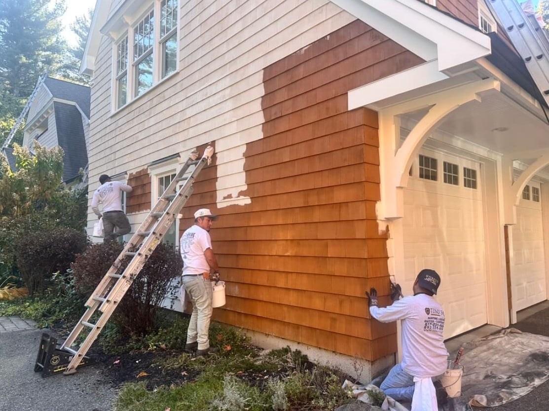 TINOS Inc. proudly completed multiple exterior painting services in Massachusetts, enhancing curb appeal and protecting homes from New England weather. Our expert exterior painters MA worked on wood siding painting, vinyl siding painting, trim and fascia painting, porch and deck painting, garage painting, and full exterior repainting with high-performance weather-resistant coatings.